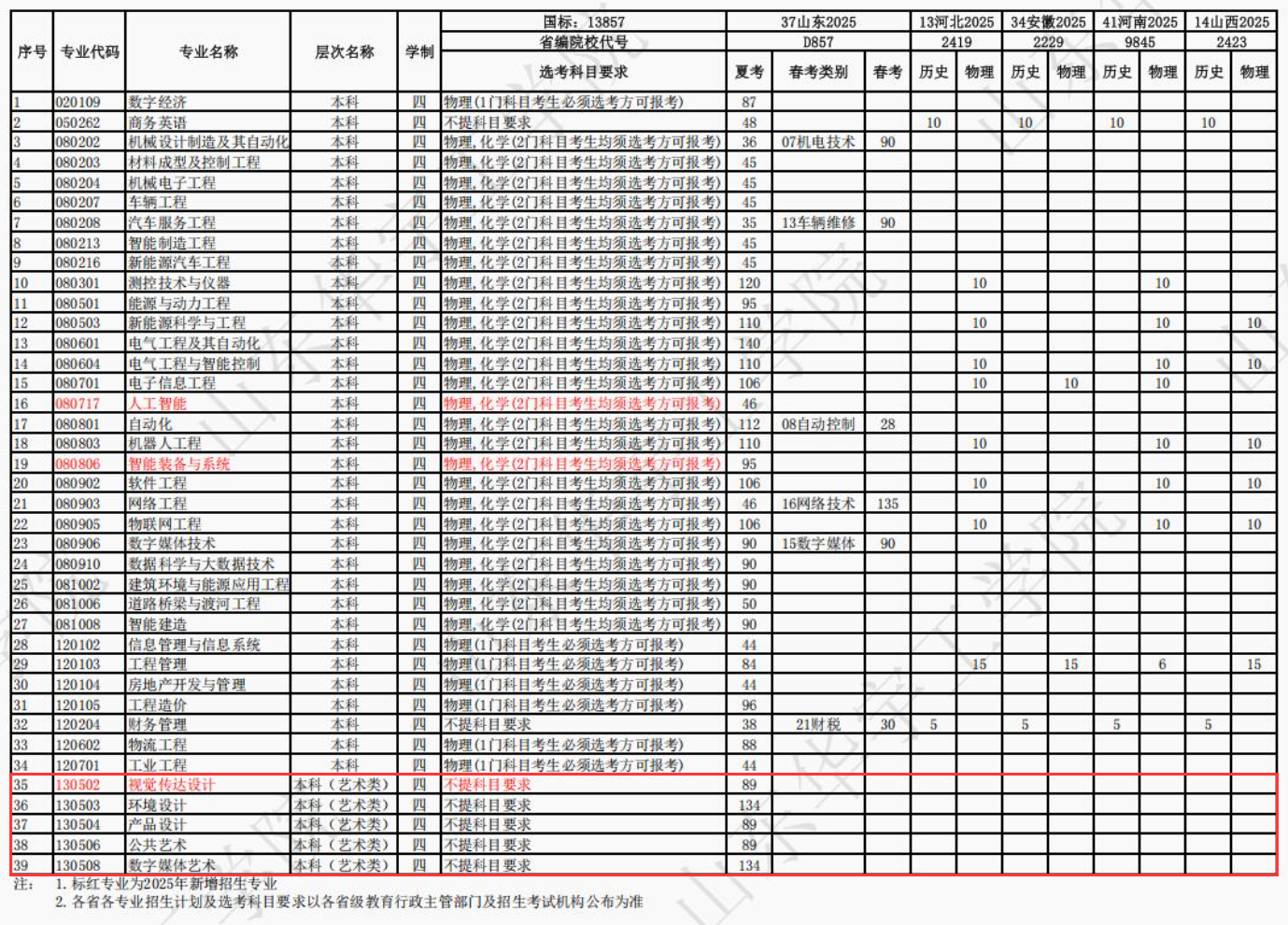 本文为大家整理的是山东华宇工学院2025年艺术类招生计划,主要包含招生专业、各专业招生人数等信息,希望对大家有所帮助,如有变动或异议,请以各省市教育考试院或学校公布的信息为准。