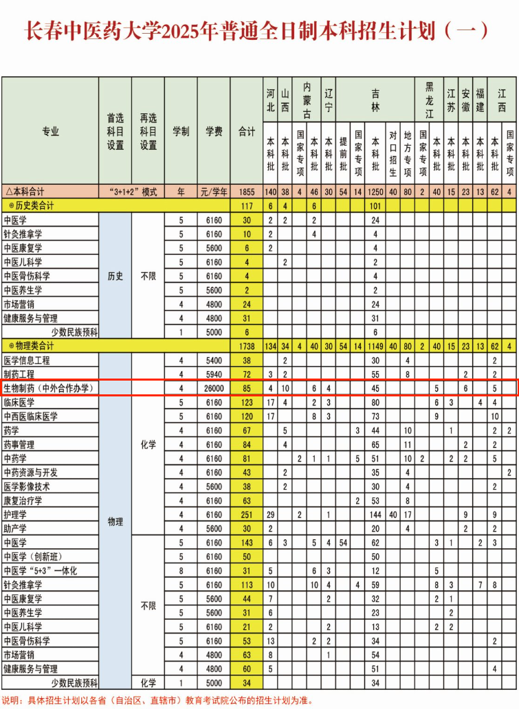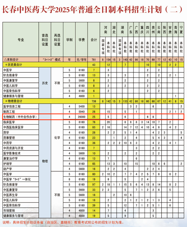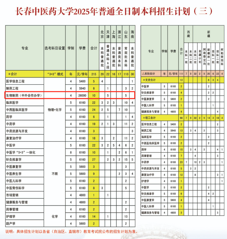 2025长春中医药大学中外合作办学招生计划及各专业招生人数