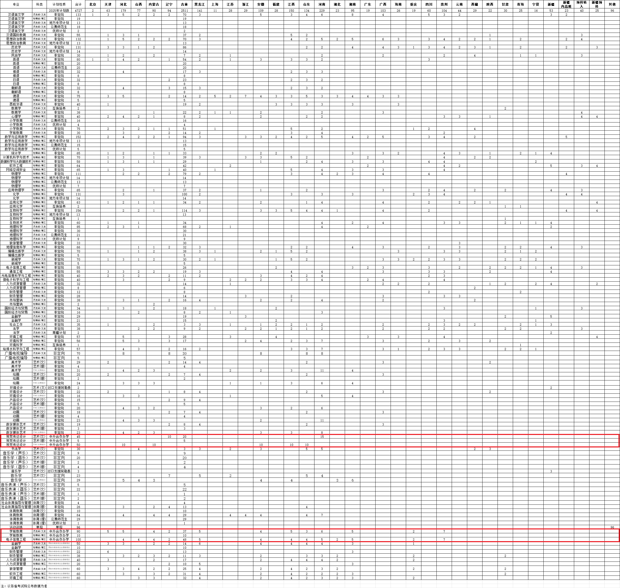 2025年吉林师范大学本科招生计划一览表(中外合作)