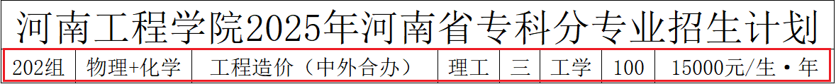 河南工程学院中外合作办学招生计划