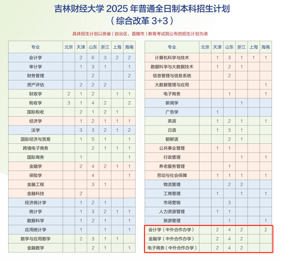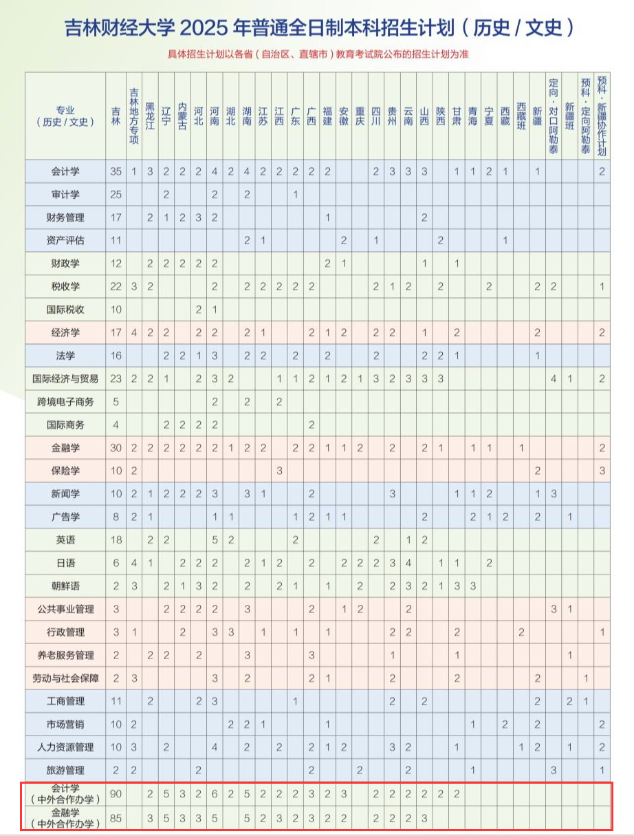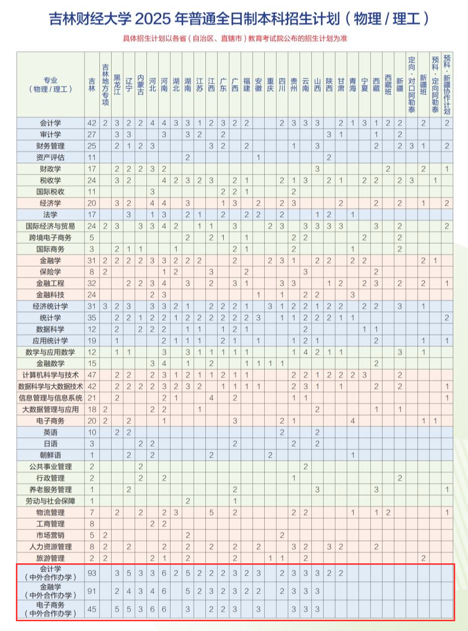 2025吉林财经大学中外合作办学招生计划及各专业招生人数