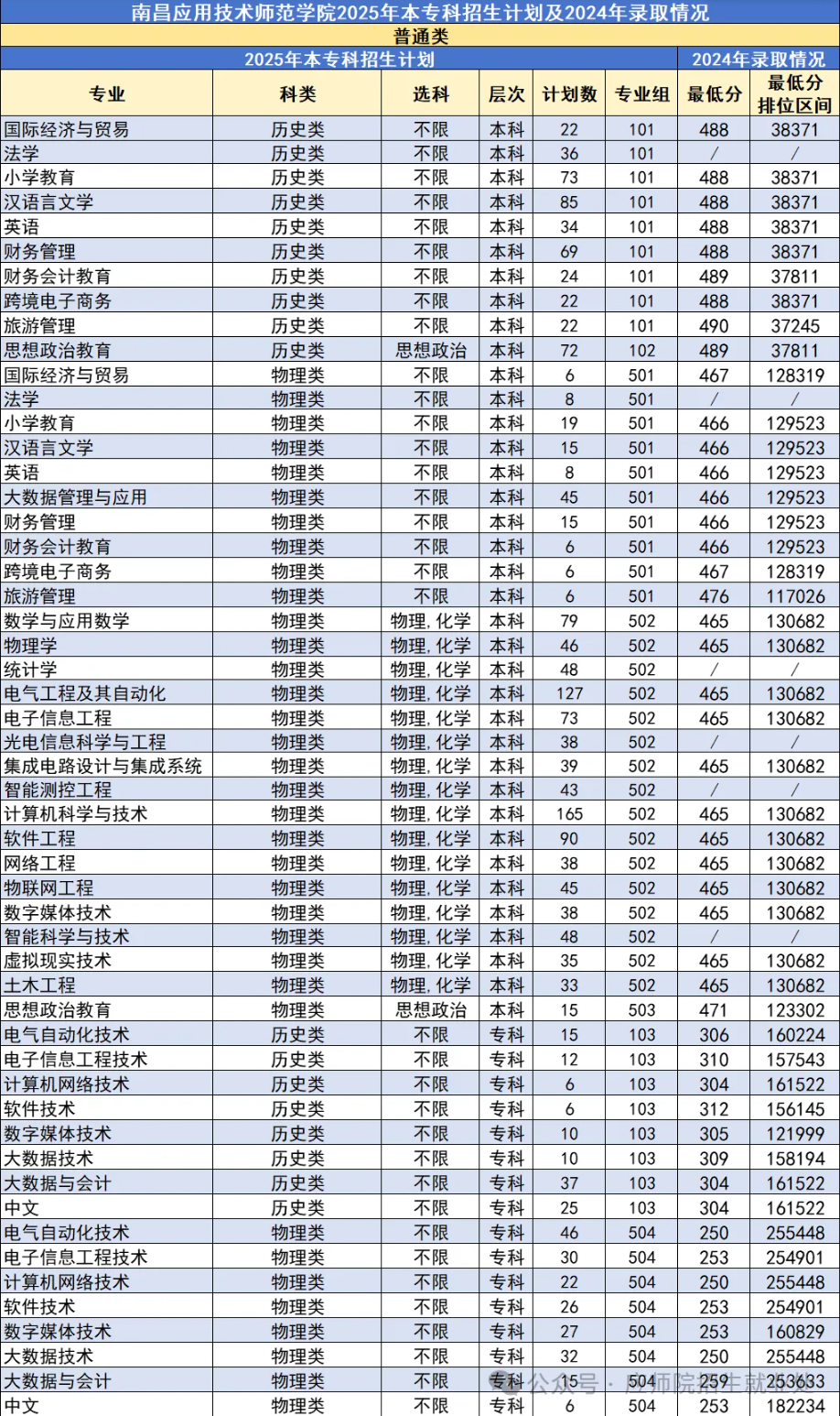 本文为大家整理的是南昌应用技术师范学院2025年招生计划,主要包含招生专业、招生类别、各专业招生人数等信息,希望对大家有所帮助,如有变动或异议,请以各省市教育考试院或学校公布的信息为准。