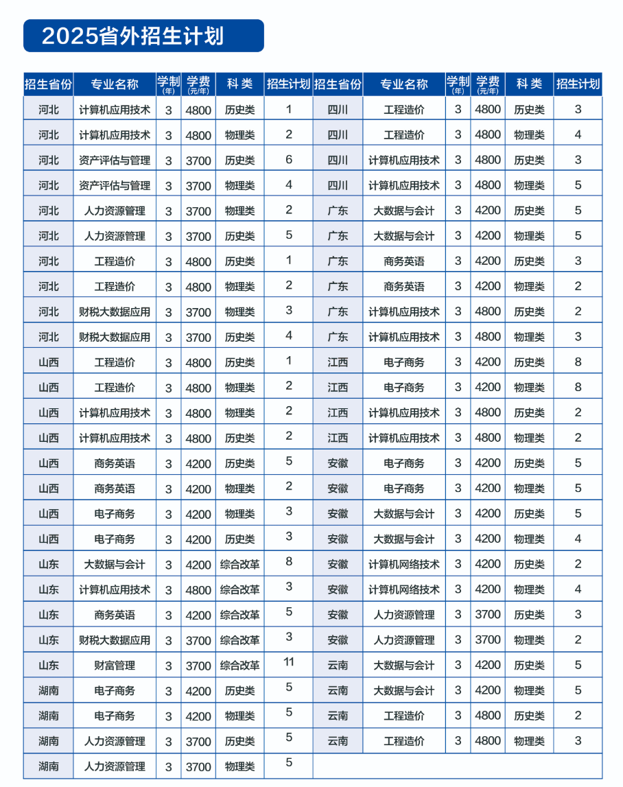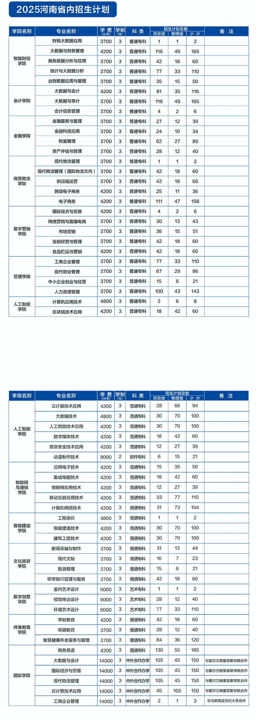 本文为大家整理的是河南经贸职业学院2025年招生计划,主要包含招生专业、招生类别、各专业招生人数等信息,希望对大家有所帮助,如有变动或异议,请以各省市教育考试院或学校公布的信息为准。