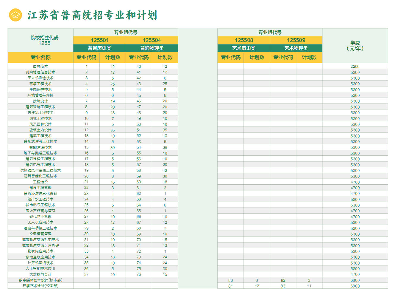 本文为大家整理的是江苏城乡建设职业学院2025年招生计划,主要包含招生专业、招生类别、各专业招生人数等信息,希望对大家有所帮助,如有变动或异议,请以各省市教育考试院或学校公布的信息为准。