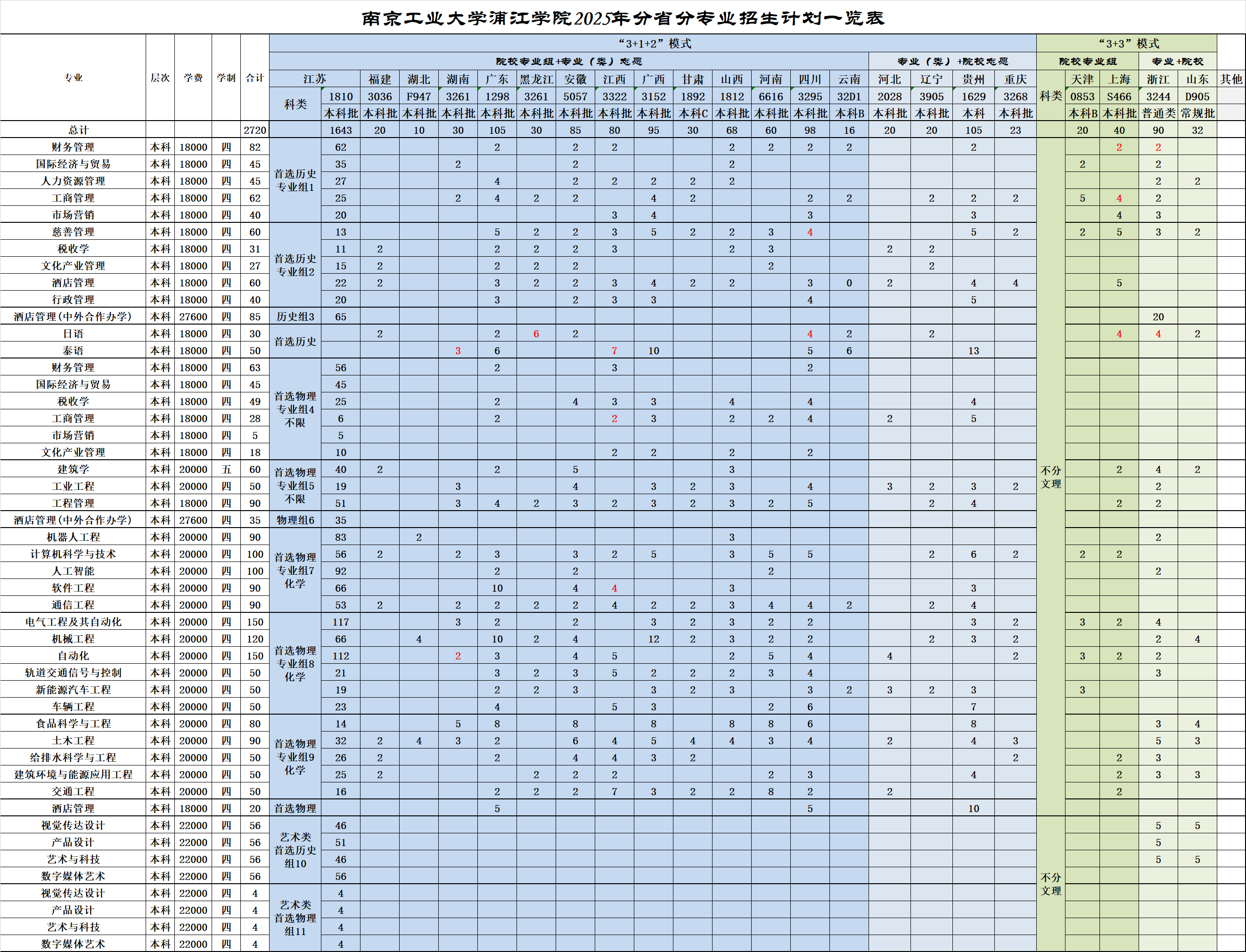 2025南京工业大学浦江学院招生计划及各专业招生人数