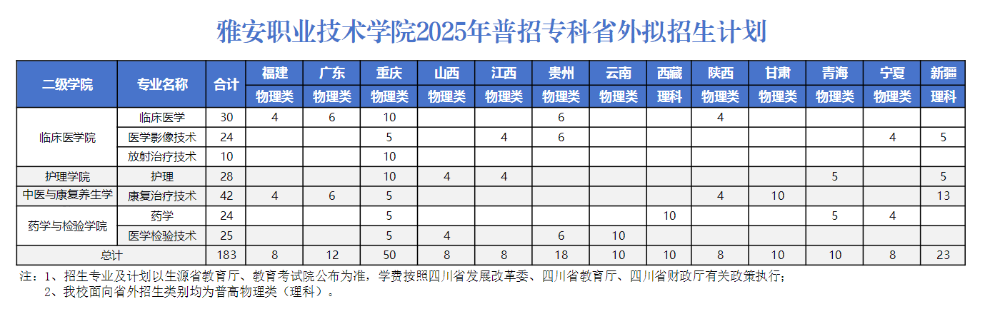 本文为大家整理的是雅安职业技术学院2025年招生计划,主要包含招生专业、招生类别、各专业招生人数等信息,希望对大家有所帮助,如有变动或异议,请以各省市教育考试院或学校公布的信息为准。