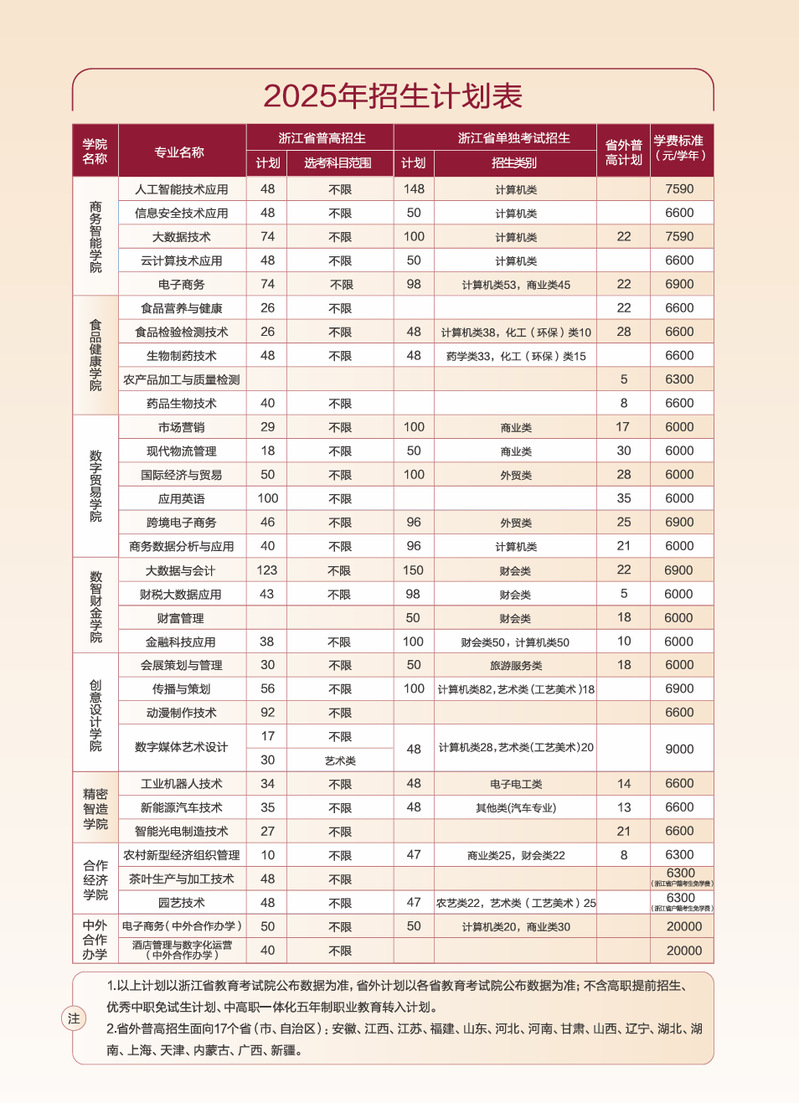 2025浙江经贸职业技术学院招生计划及各专业招生人数