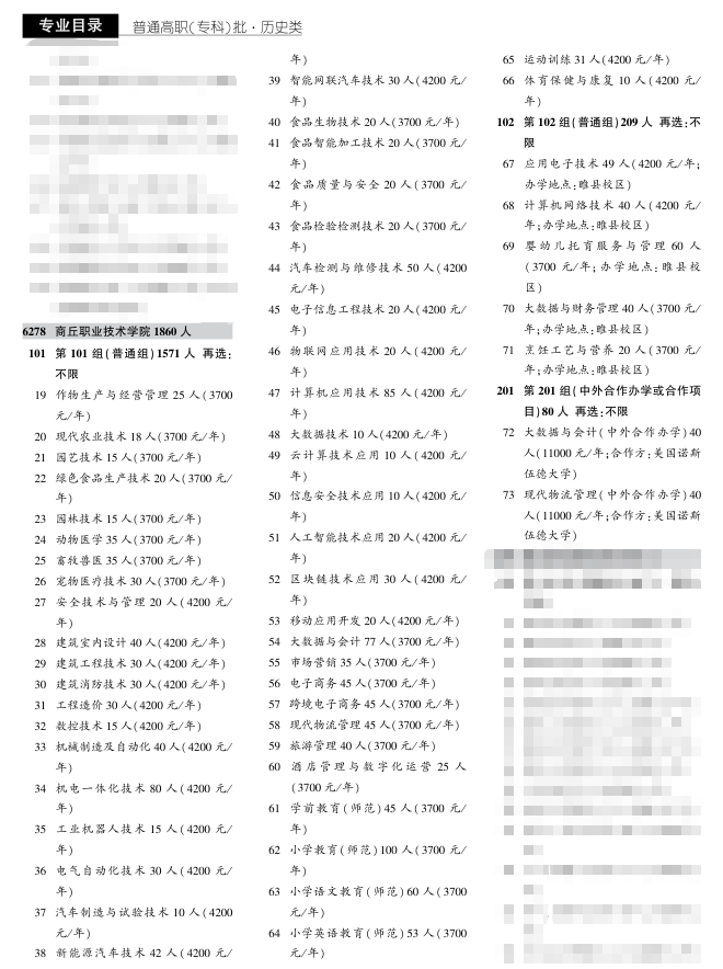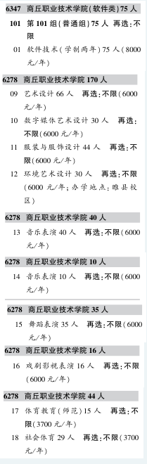 2025年商丘职院 《招生考试之友》专业代码及计划