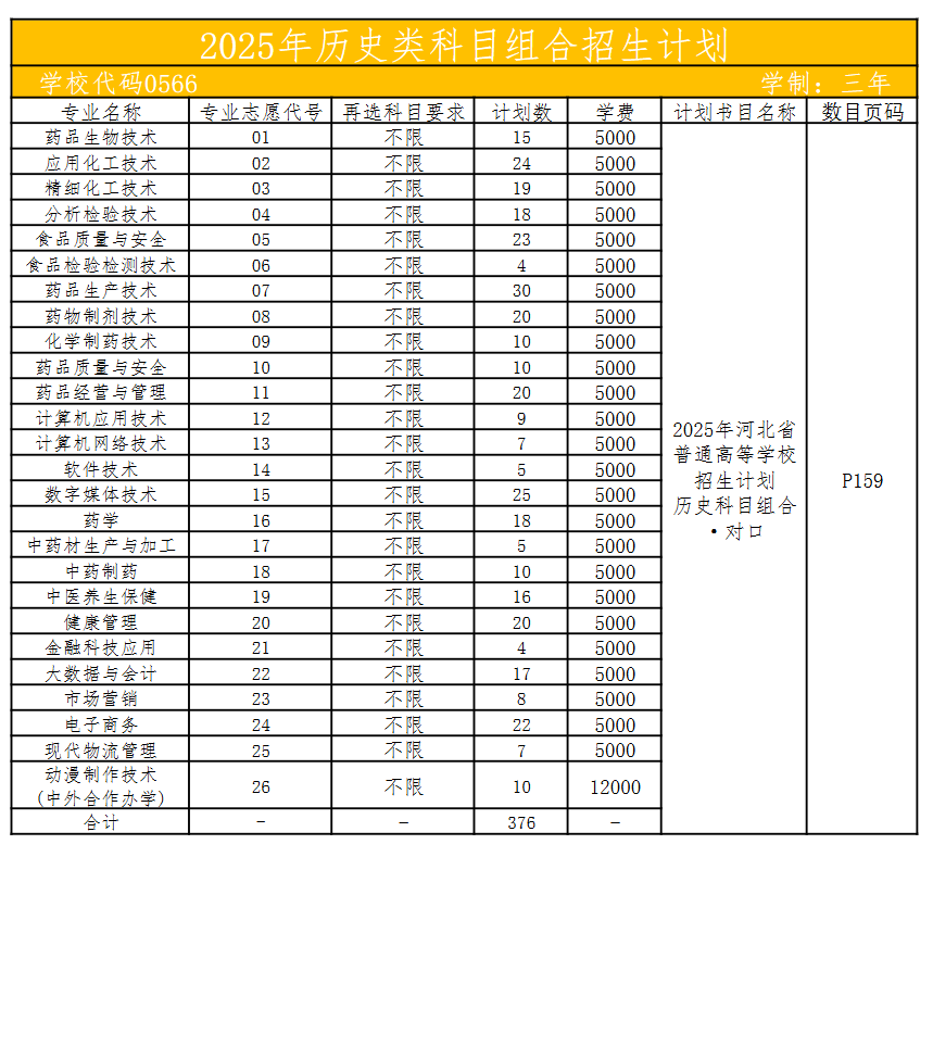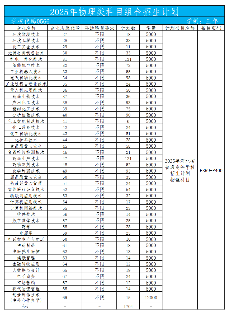 本文为大家整理的是河北化工医药职业技术学院2025年招生计划,主要包含招生专业、招生类别、各专业招生人数等信息,希望对大家有所帮助,如有变动或异议,请以各省市教育考试院或学校公布的信息为准。