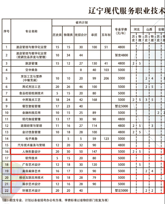 本文为大家整理的是辽宁现代服务职业技术学院2025年艺术类招生计划,主要包含招生专业、各专业招生人数等信息,希望对大家有所帮助,如有变动或异议,请以各省市教育考试院或学校公布的信息为准。