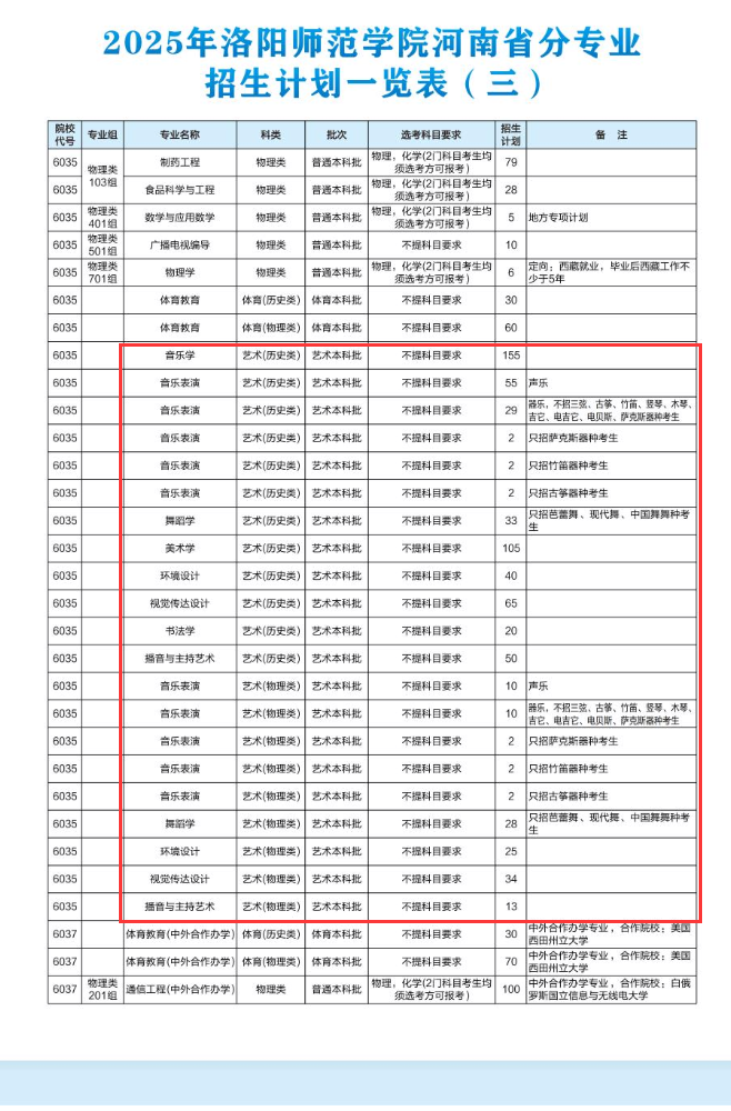 2025洛阳师范学院艺术类招生计划及各专业招生人数