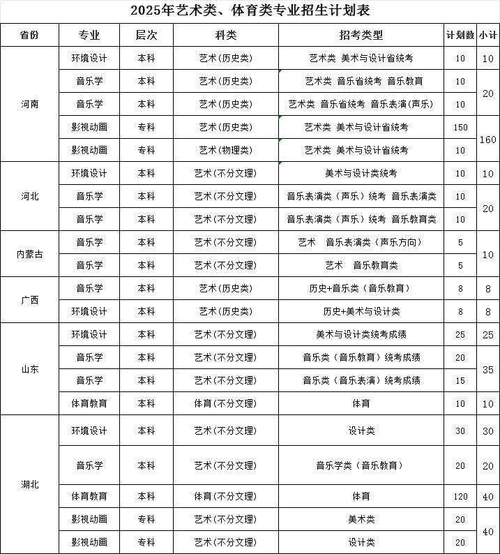 本文为大家整理的是荆州学院2025年艺术类招生计划,主要包含招生专业、各专业招生人数等信息,希望对大家有所帮助,如有变动或异议,请以各省市教育考试院或学校公布的信息为准。