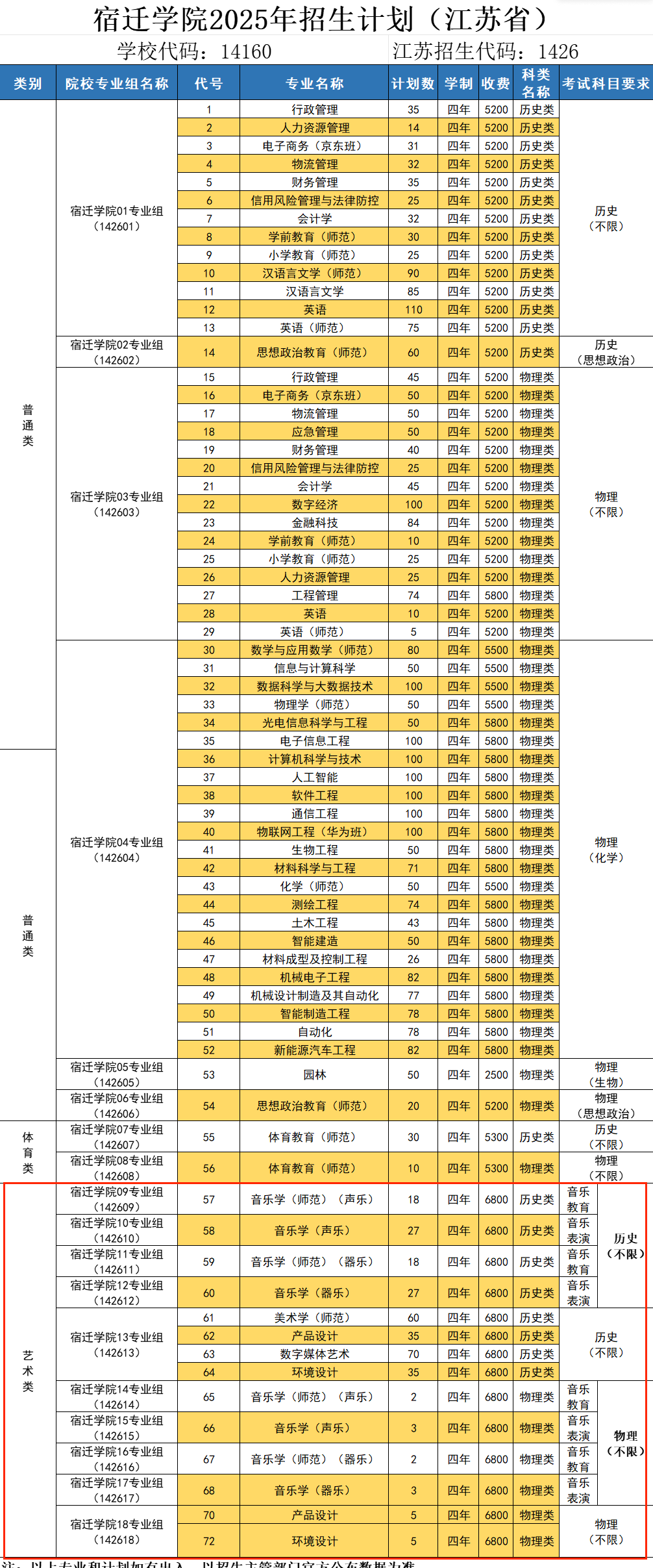 2025宿迁学院艺术类招生计划及各专业招生人数