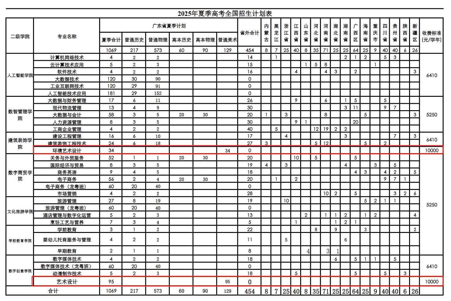 2025广东南华工商职业学院艺术类招生计划及各专业招生人数