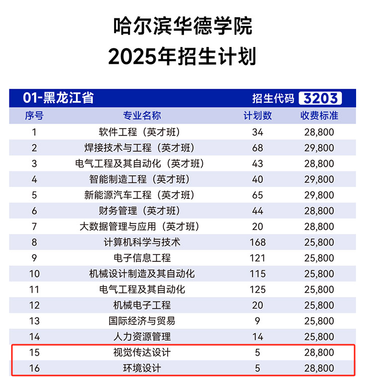 本文为大家整理的是哈尔滨华德学院2025年艺术类招生计划,主要包含招生专业、各专业招生人数等信息,希望对大家有所帮助,如有变动或异议,请以各省市教育考试院或学校公布的信息为准。
