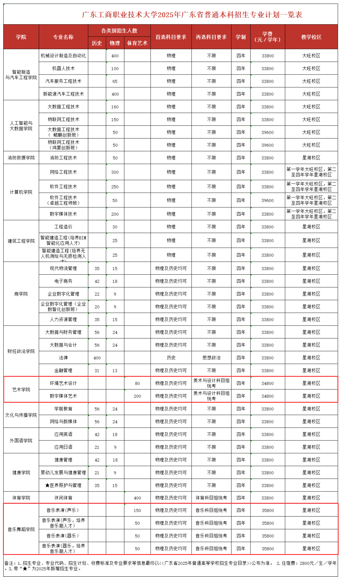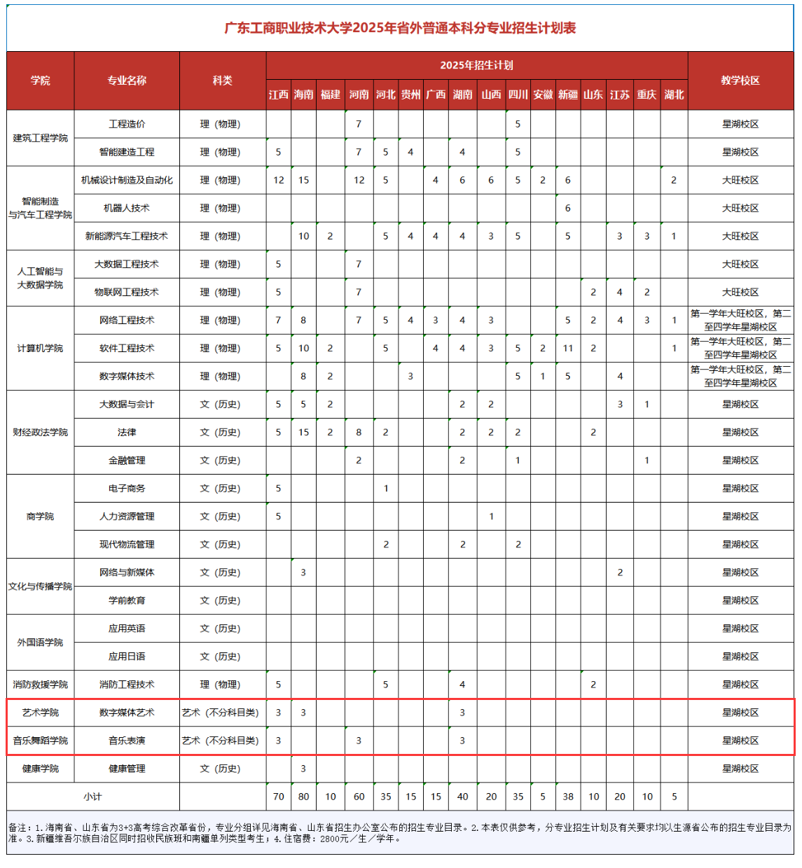 2025广东工商职业技术大学艺术类招生计划及各专业招生人数
