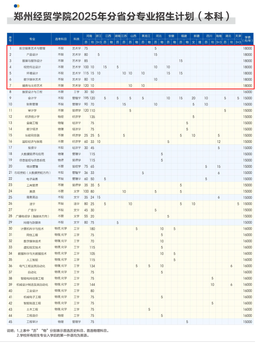 2025郑州经贸学院艺术类招生计划及各专业招生人数