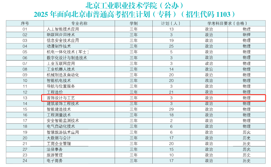 本文为大家整理的是北京工业职业技术学院2025年艺术类招生计划,主要包含招生专业、各专业招生人数等信息,希望对大家有所帮助,如有变动或异议,请以各省市教育考试院或学校公布的信息为准。
