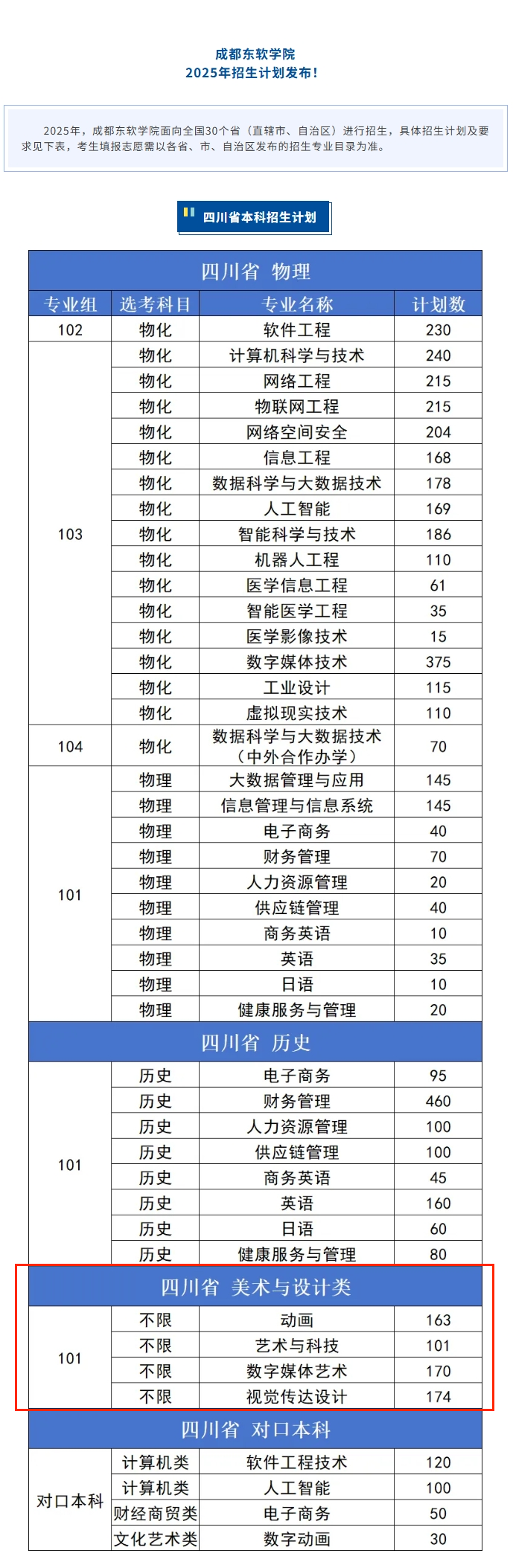 2025成都东软学院艺术类招生计划及各专业招生人数