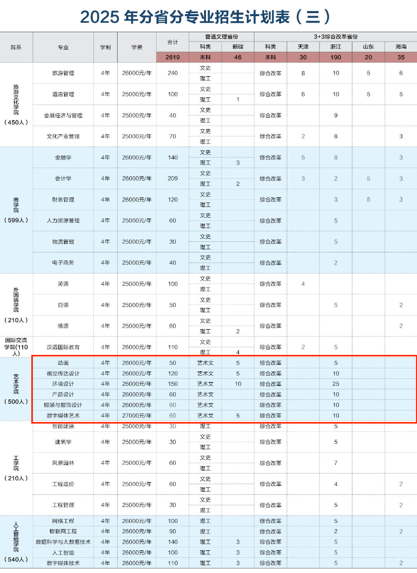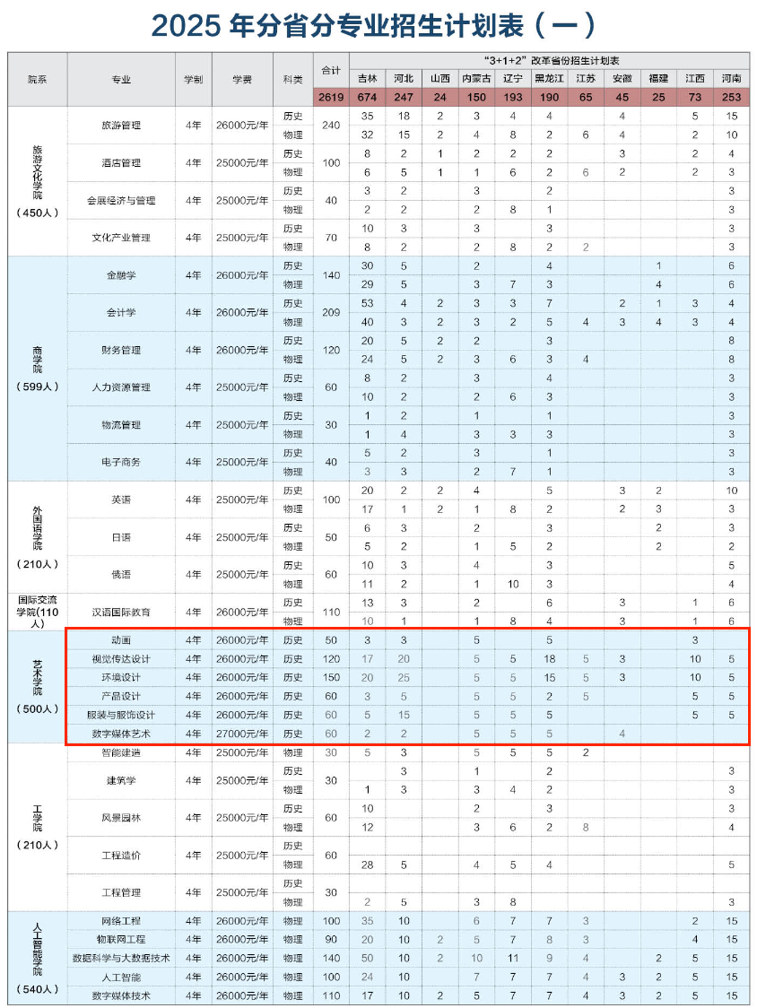 2025长春大学旅游学院艺术类招生计划及各专业招生人数