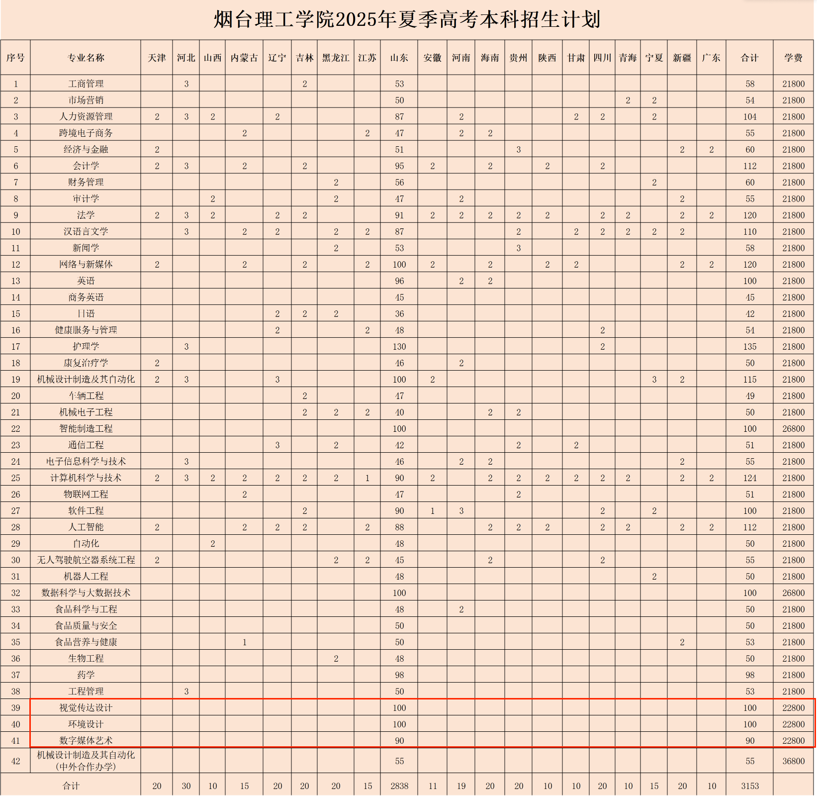 本文为大家整理的是烟台理工学院2025年艺术类招生计划,主要包含招生专业、各专业招生人数等信息,希望对大家有所帮助,如有变动或异议,请以各省市教育考试院或学校公布的信息为准。