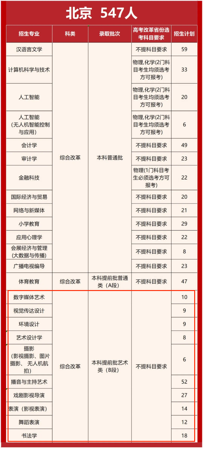 2025北京艺术类招生计划