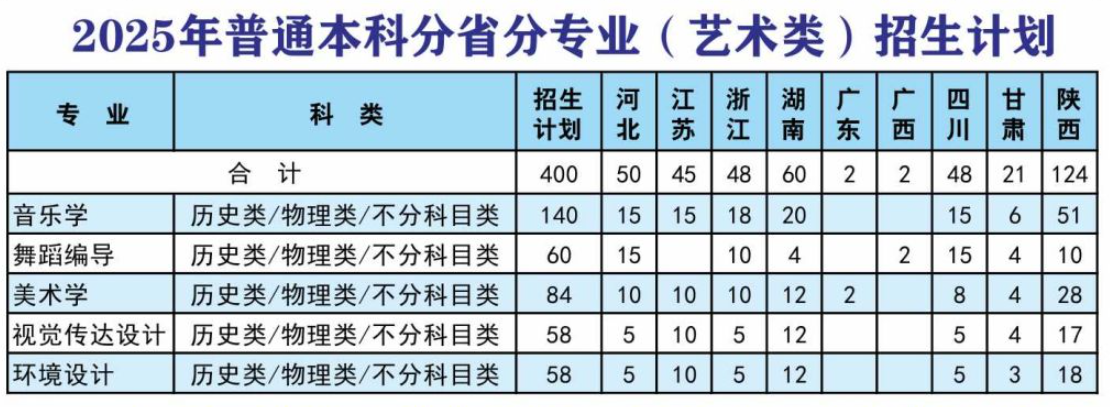 2025陕西理工大学艺术类招生计划及各专业招生人数
