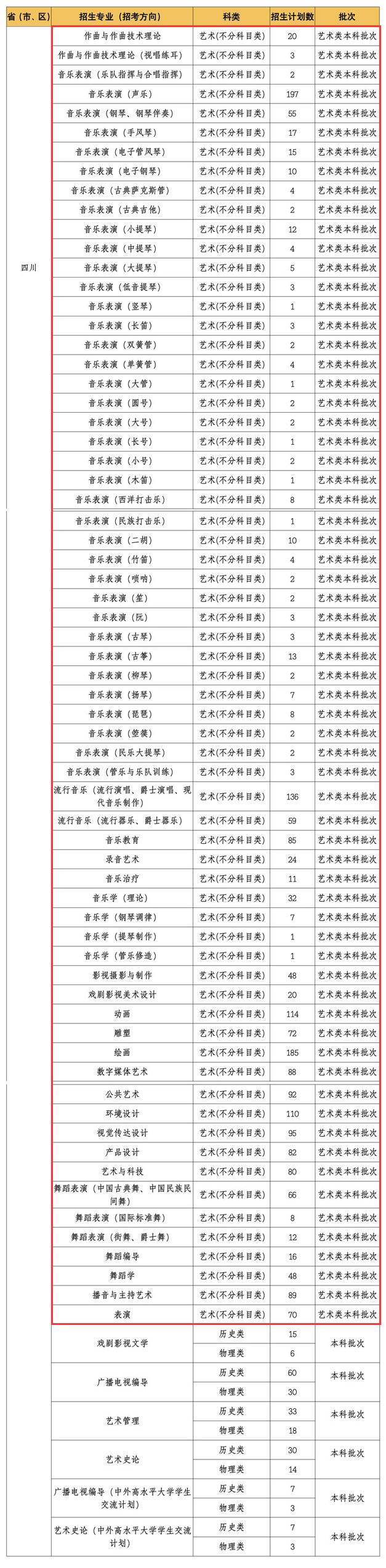 2025年招生计划-四川艺术类