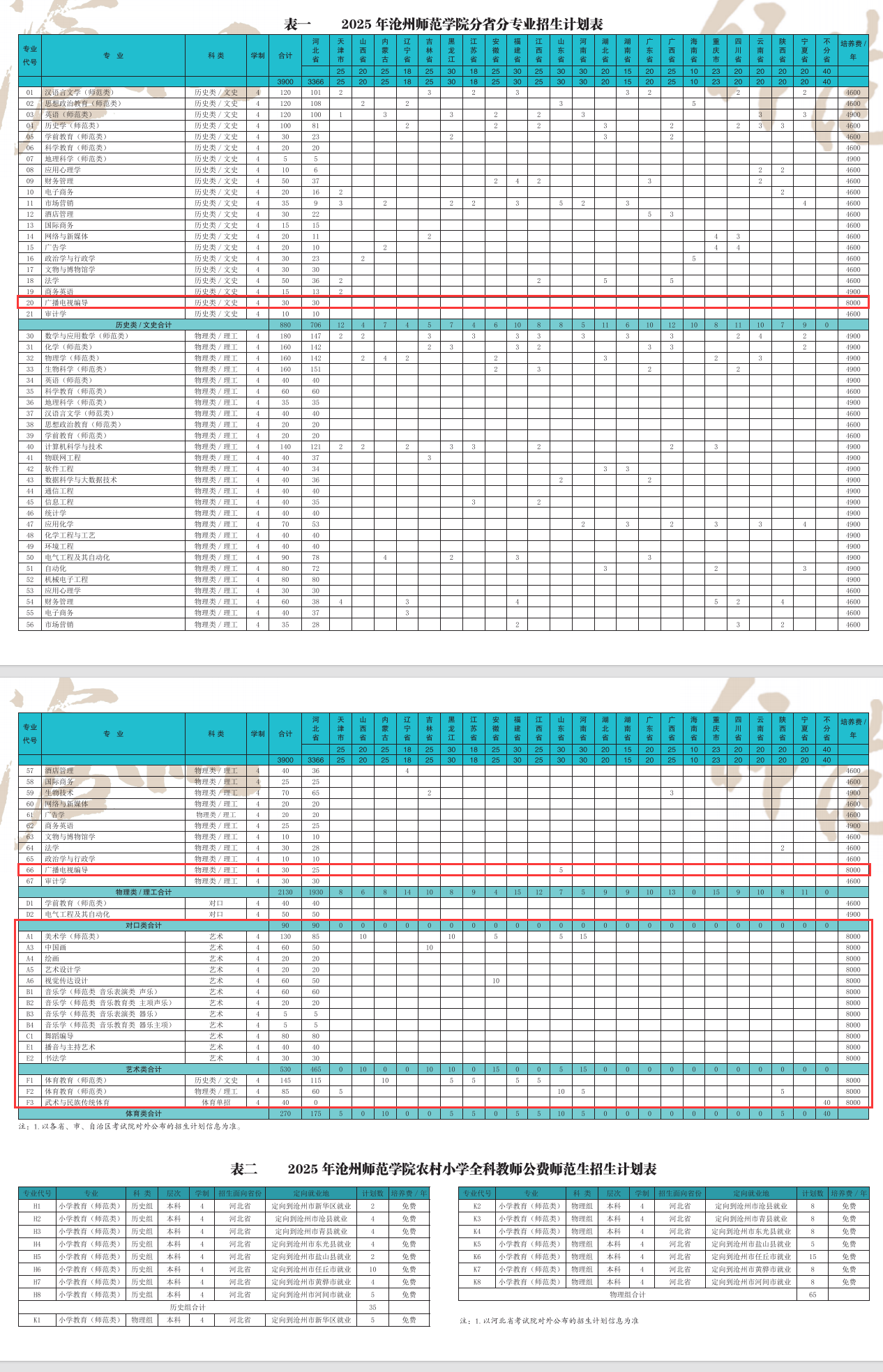 2025沧州师范学院艺术类招生计划及各专业招生人数