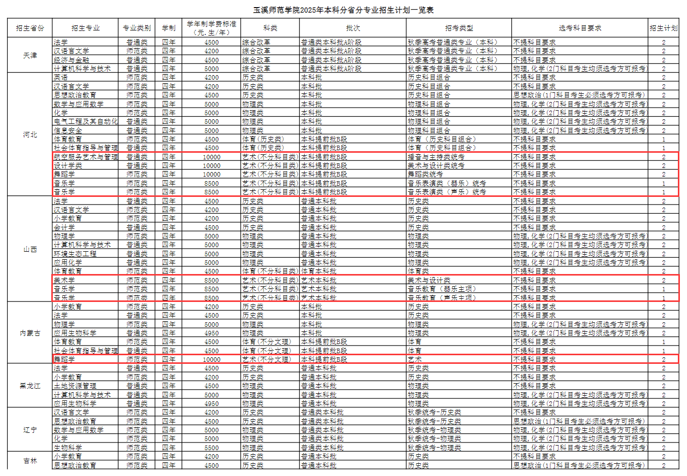 2025玉溪师范学院艺术类招生计划及各专业招生人数