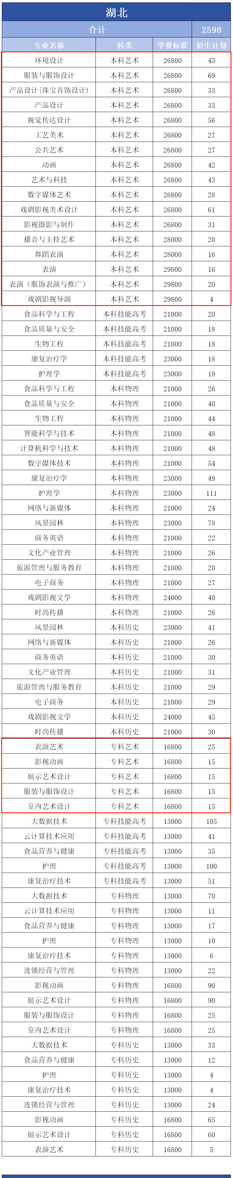 2025武汉设计工程学院艺术类招生计划及各专业招生人数
