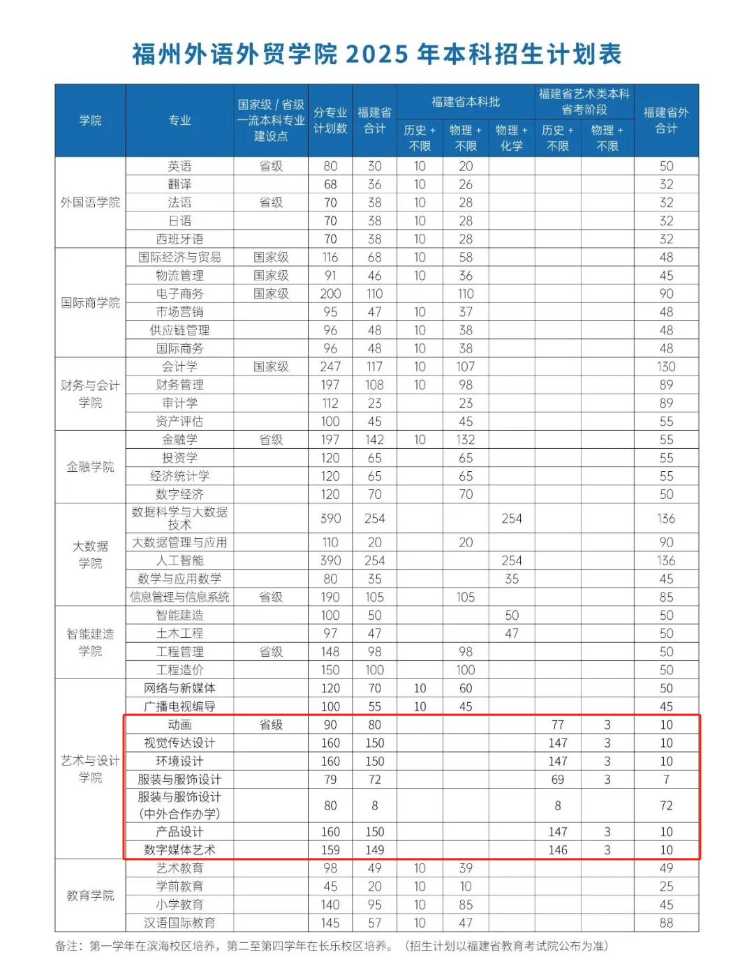 本文为大家整理的是福州外语外贸学院2025年艺术类招生计划,主要包含招生专业、各专业招生人数等信息,希望对大家有所帮助,如有变动或异议,请以各省市教育考试院或学校公布的信息为准。