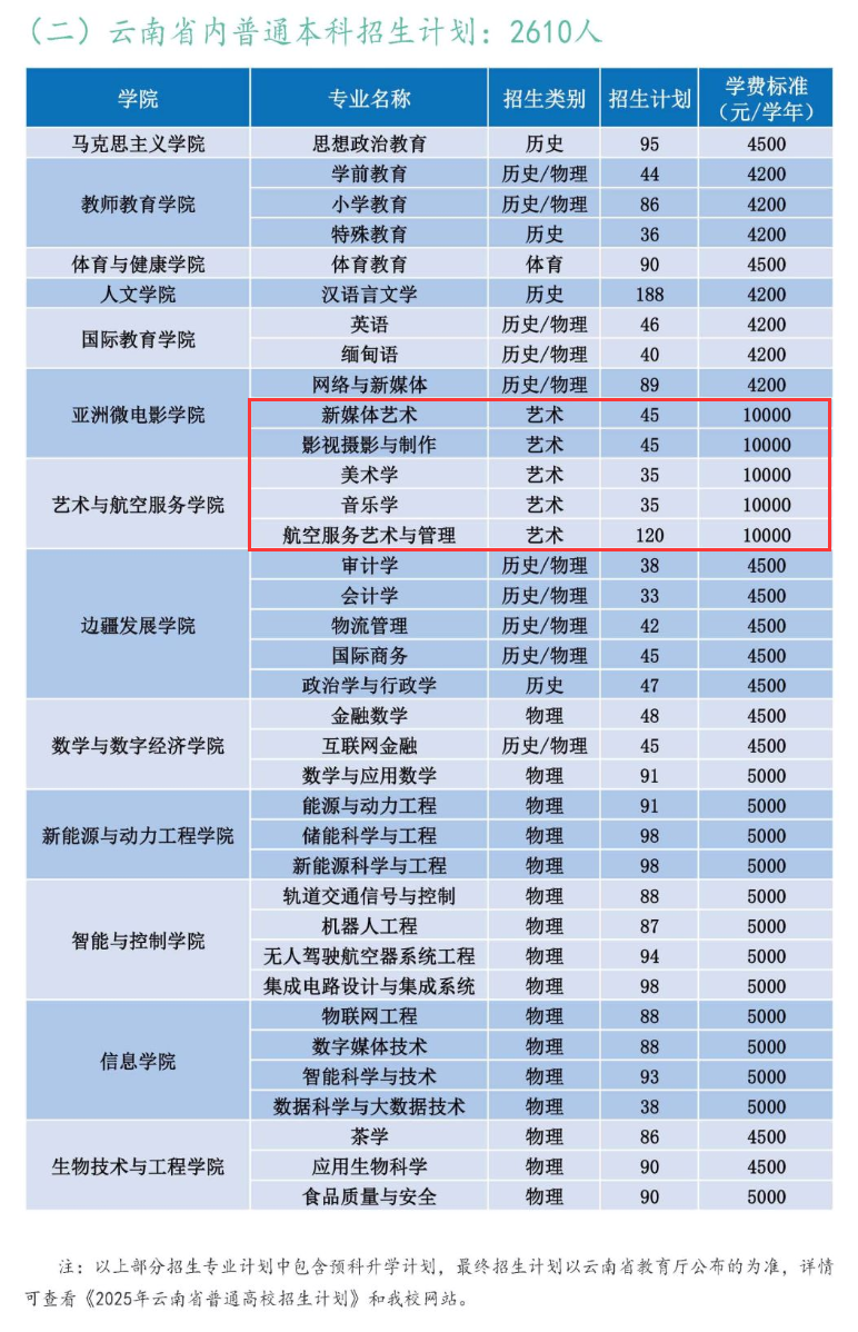 2025滇西科技师范学院艺术类招生计划及各专业招生人数