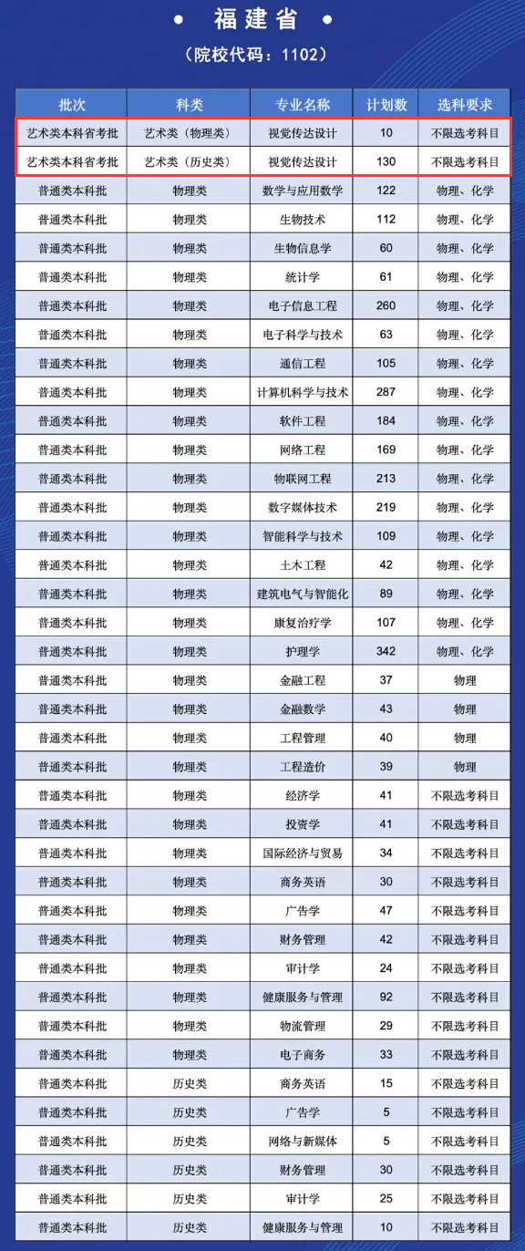 福州理工学院2025年普通高考本科招生计划-艺术类