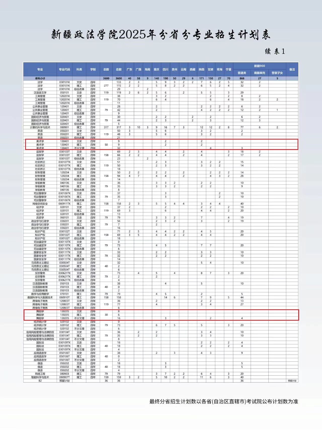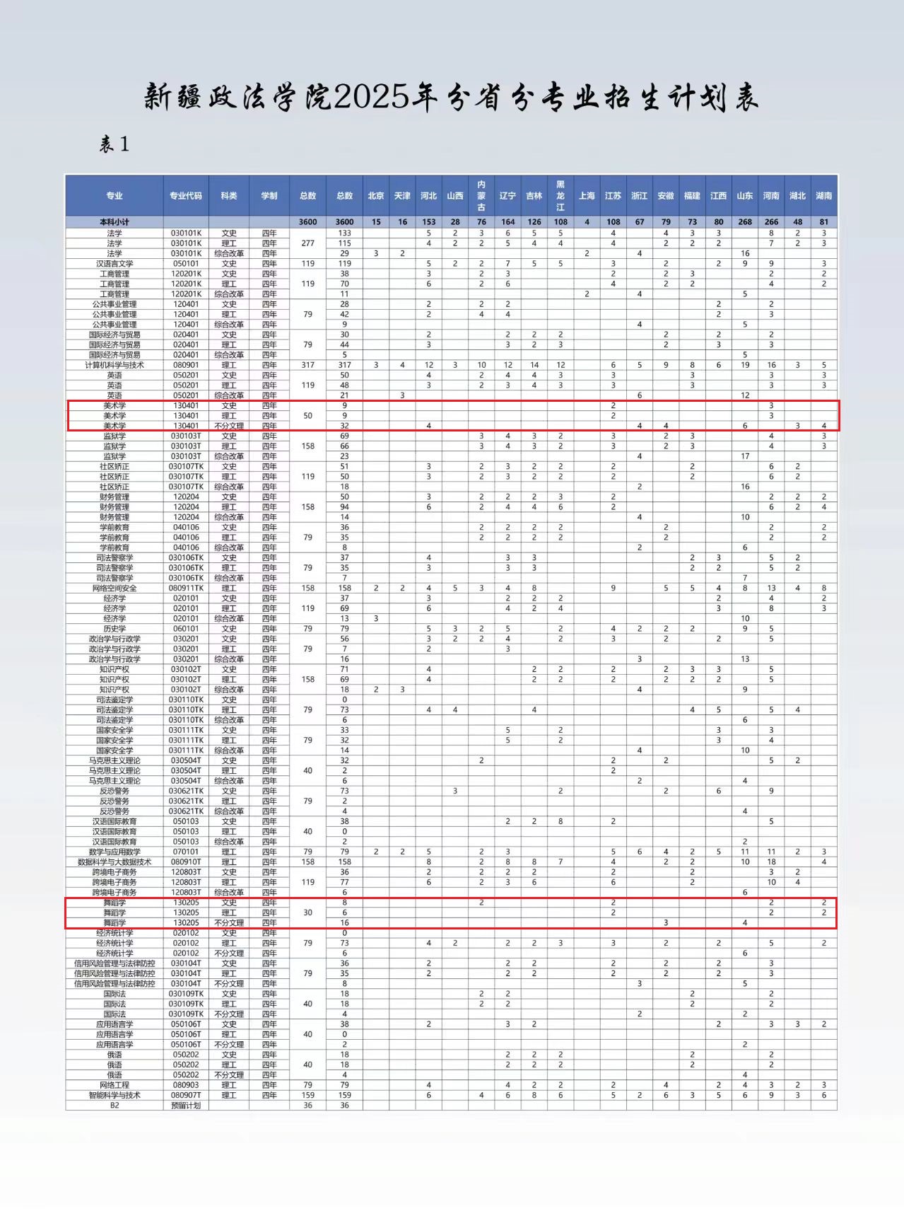 本文为大家整理的是新疆政法学院2025年艺术类招生计划,主要包含招生专业、各专业招生人数等信息,希望对大家有所帮助,如有变动或异议,请以各省市教育考试院或学校公布的信息为准。