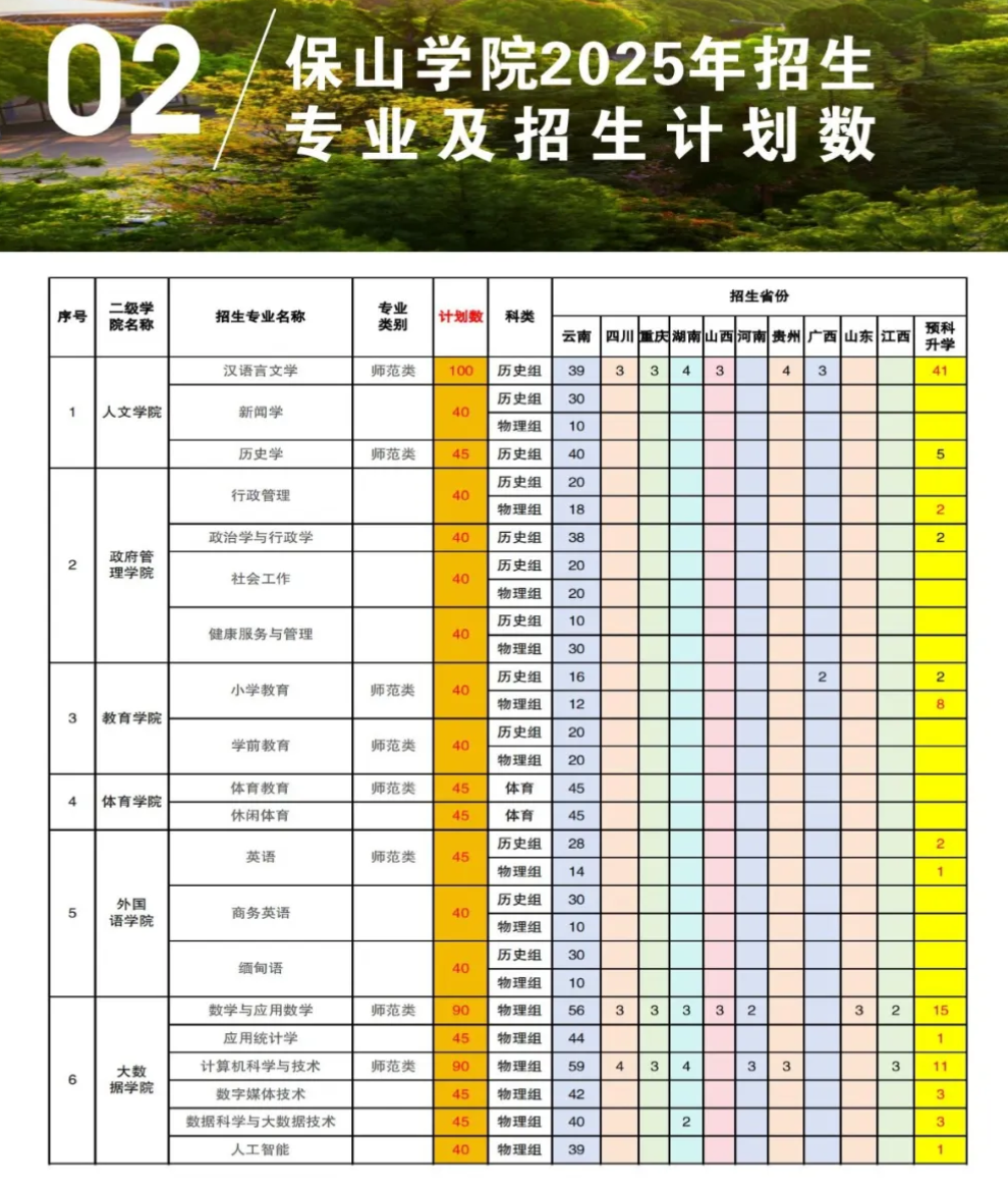 本文为大家整理的是保山学院2025年艺术类招生计划,主要包含招生专业、各专业招生人数等信息,希望对大家有所帮助,如有变动或异议,请以各省市教育考试院或学校公布的信息为准。