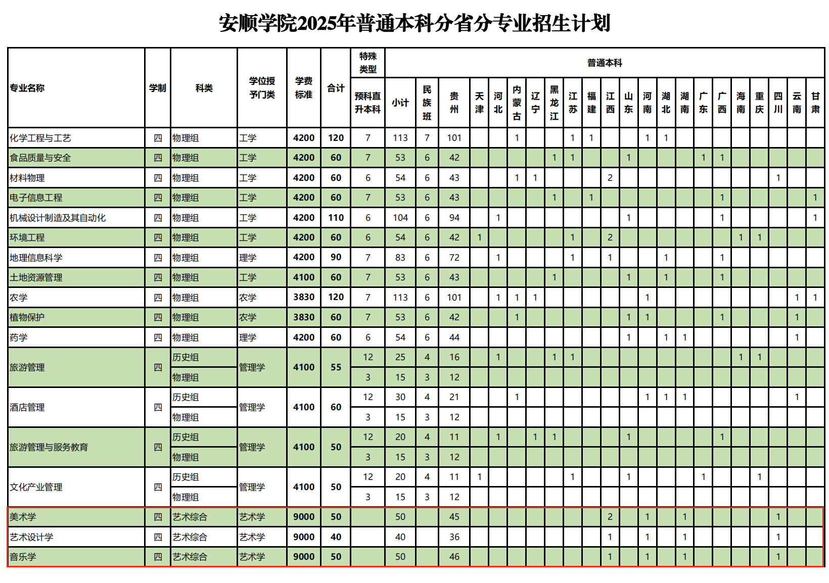 本文为大家整理的是安顺学院2025年艺术类招生计划,主要包含招生专业、各专业招生人数等信息,希望对大家有所帮助,如有变动或异议,请以各省市教育考试院或学校公布的信息为准。