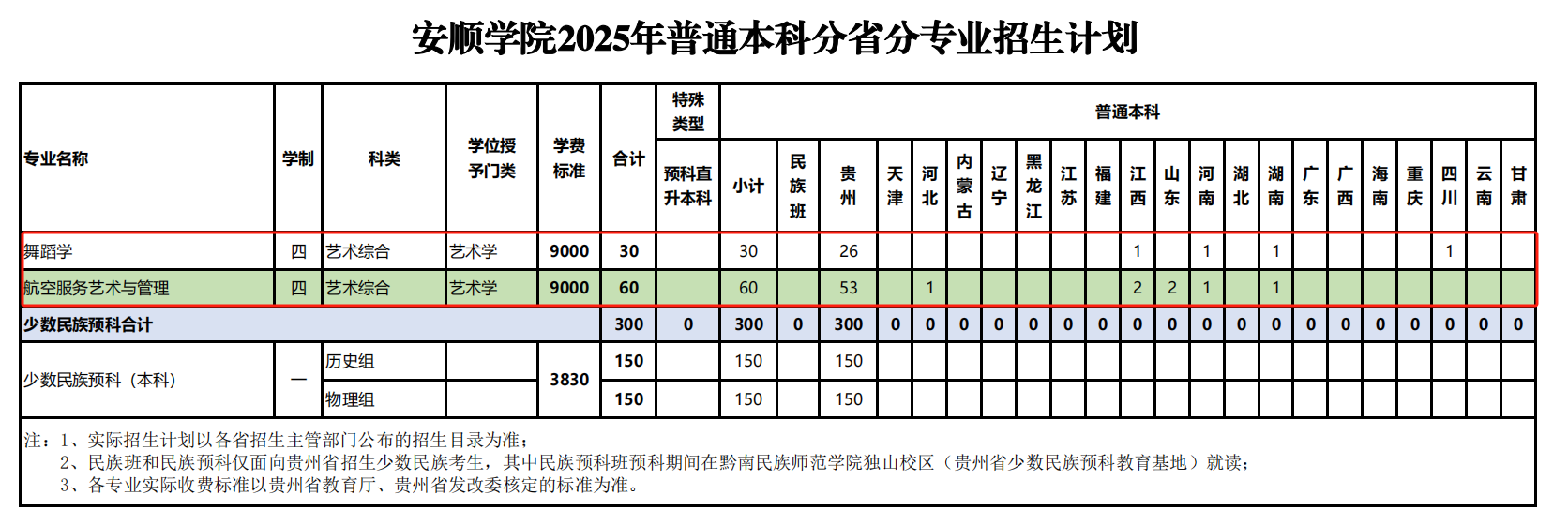 2025安顺学院艺术类招生计划及各专业招生人数