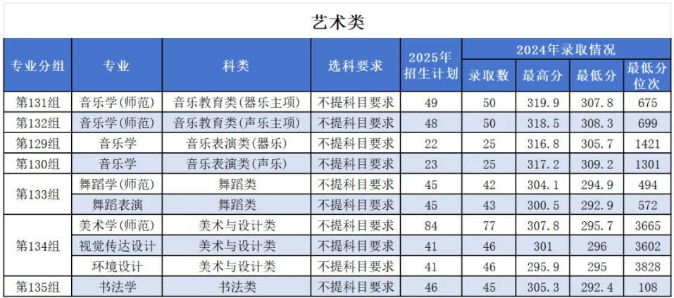 湖南第一师范学院2025年湖南省艺术类招生计划