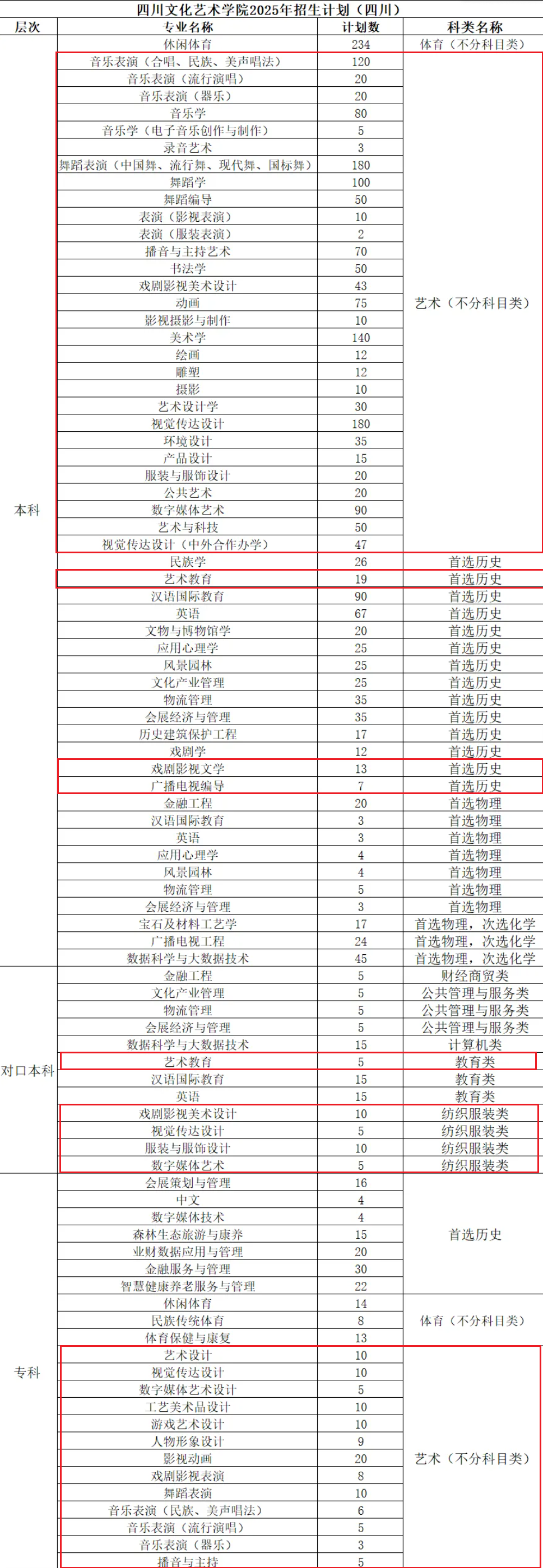 2025四川文化艺术学院艺术类招生计划及各专业招生人数