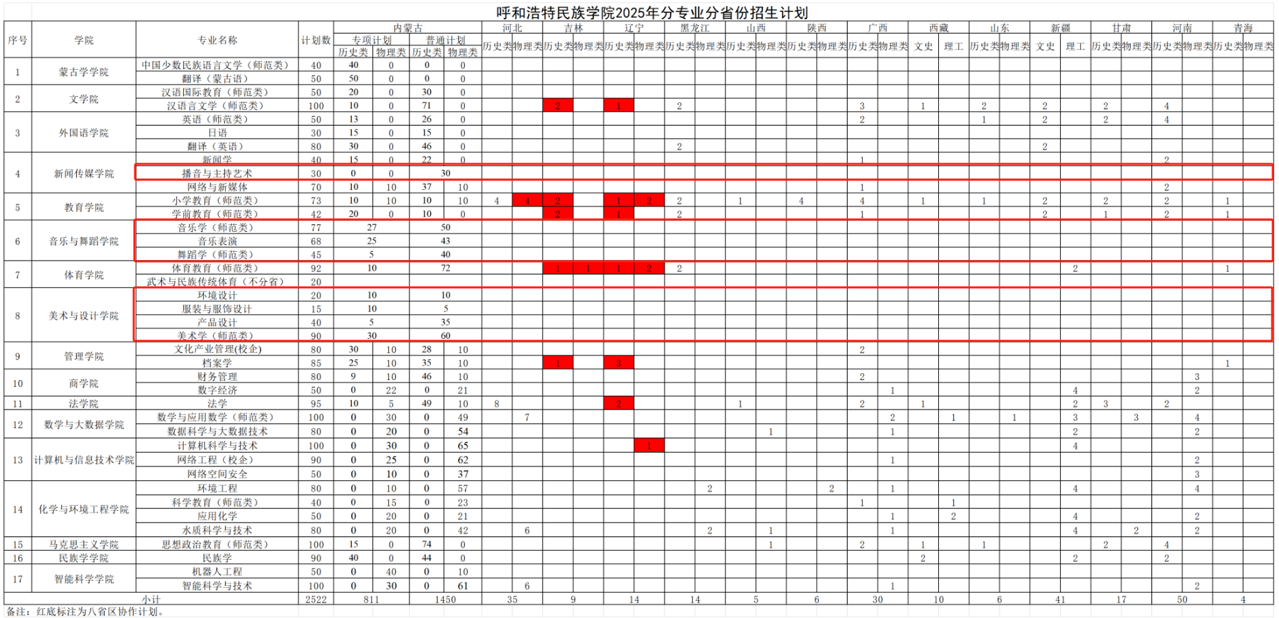 本文为大家整理的是呼和浩特民族学院2025年艺术类招生计划,主要包含招生专业、各专业招生人数等信息,希望对大家有所帮助,如有变动或异议,请以各省市教育考试院或学校公布的信息为准。