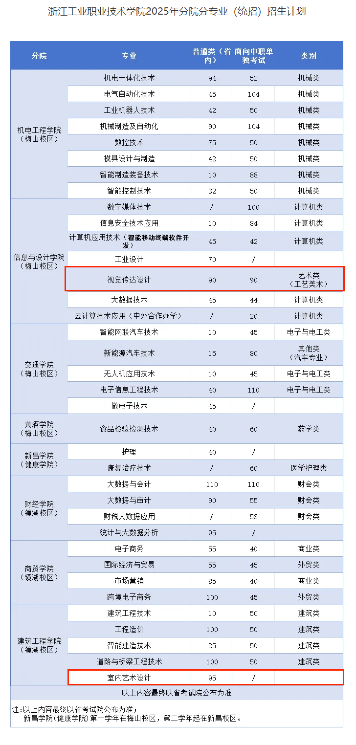 2025浙江工业职业技术学院艺术类招生计划及各专业招生人数