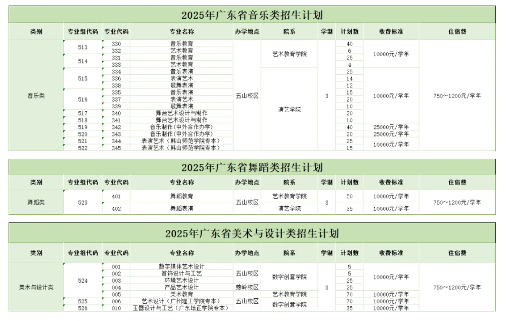 2025广东省外语艺术职业学院艺术类招生计划及各专业招生人数