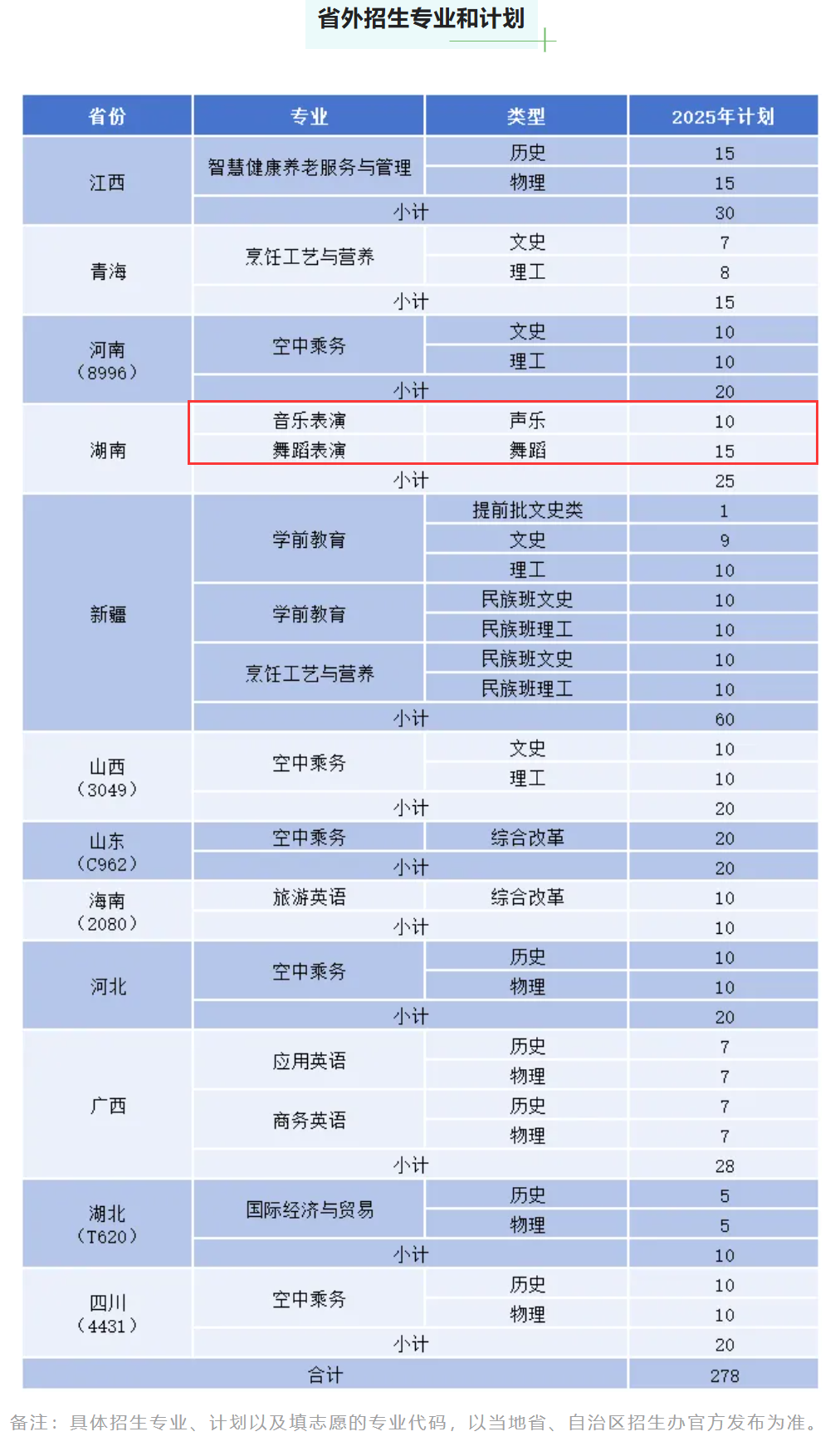 艺术类招生计划