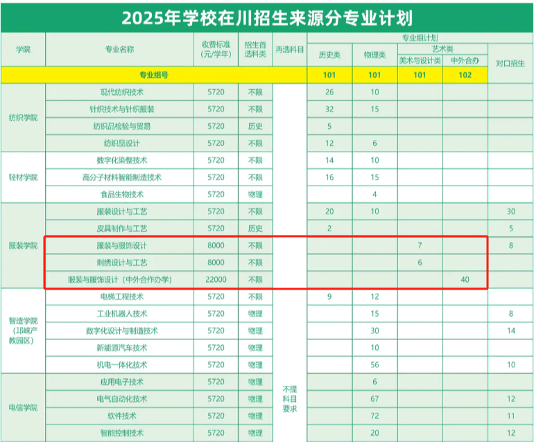 2025成都纺织高等专科学校艺术类招生计划及各专业招生人数