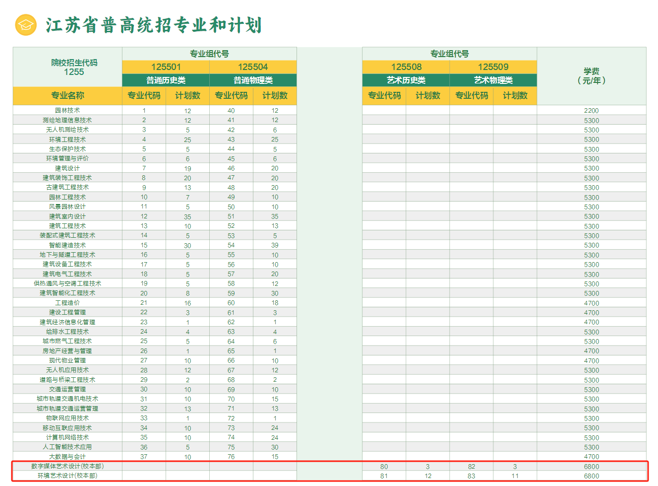 2025江苏城乡建设职业学院艺术类招生计划及各专业招生人数
