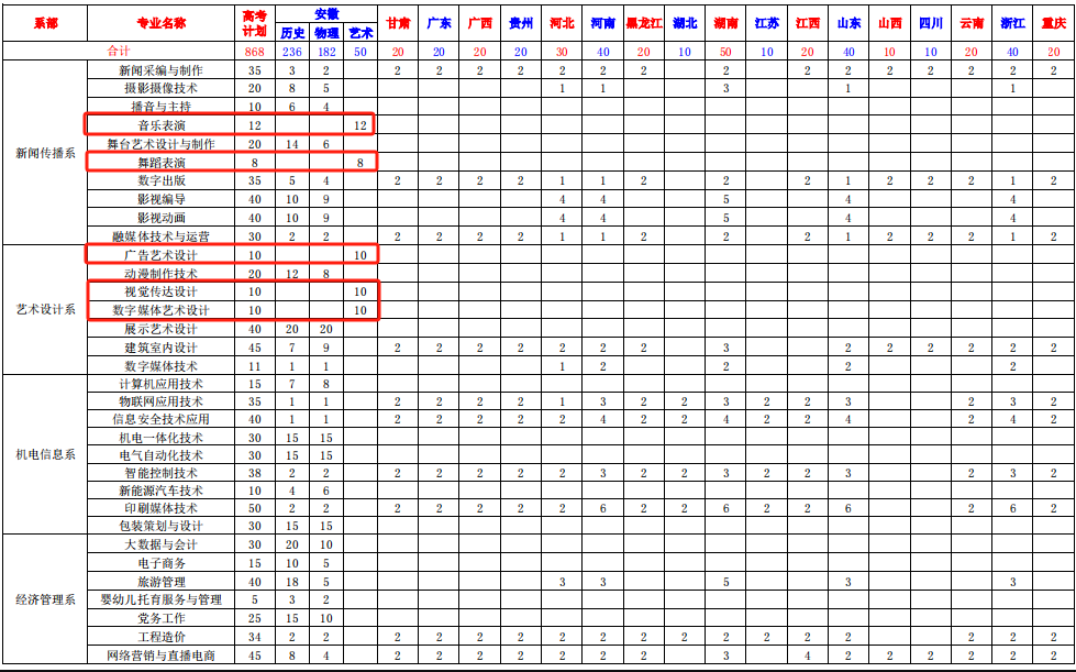 2025安徽新闻出版职业技术学院艺术类招生计划及各专业招生人数