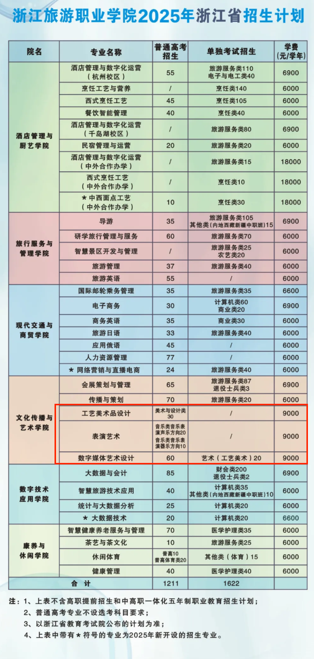 2025浙江旅游职业学院艺术类招生计划及各专业招生人数