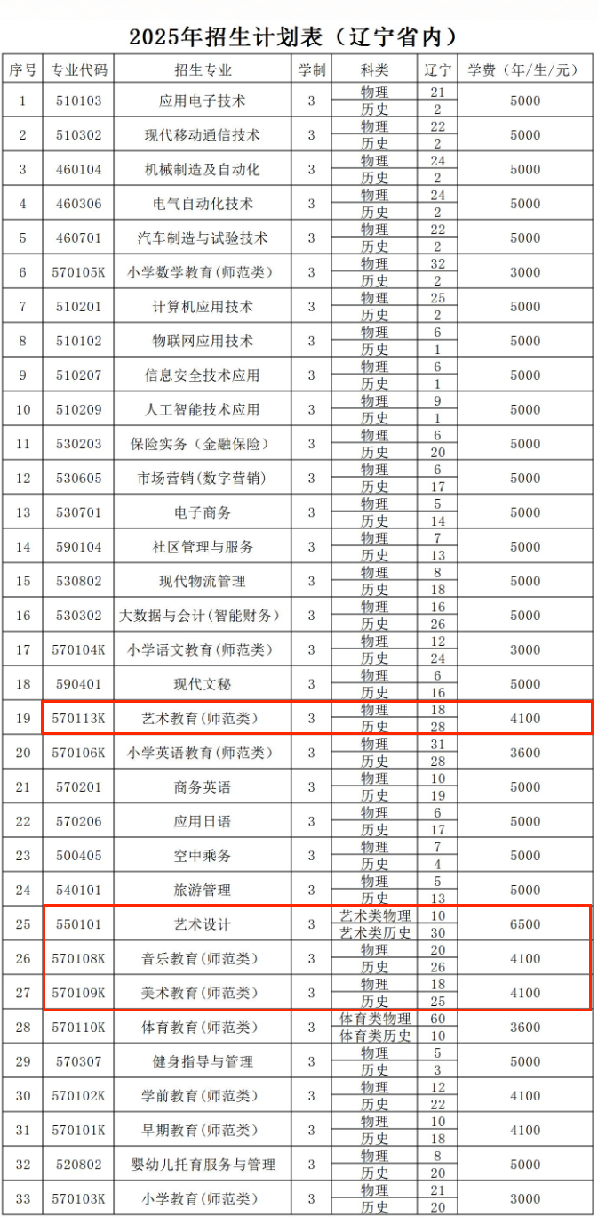2025铁岭师范高等专科学校艺术类招生计划及各专业招生人数