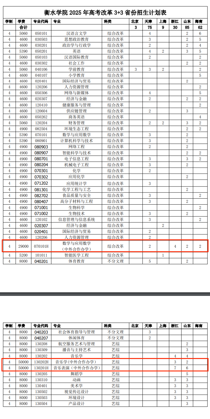 衡水学院2025年高考改革3+1+2省份招生计划表-中外合作办学